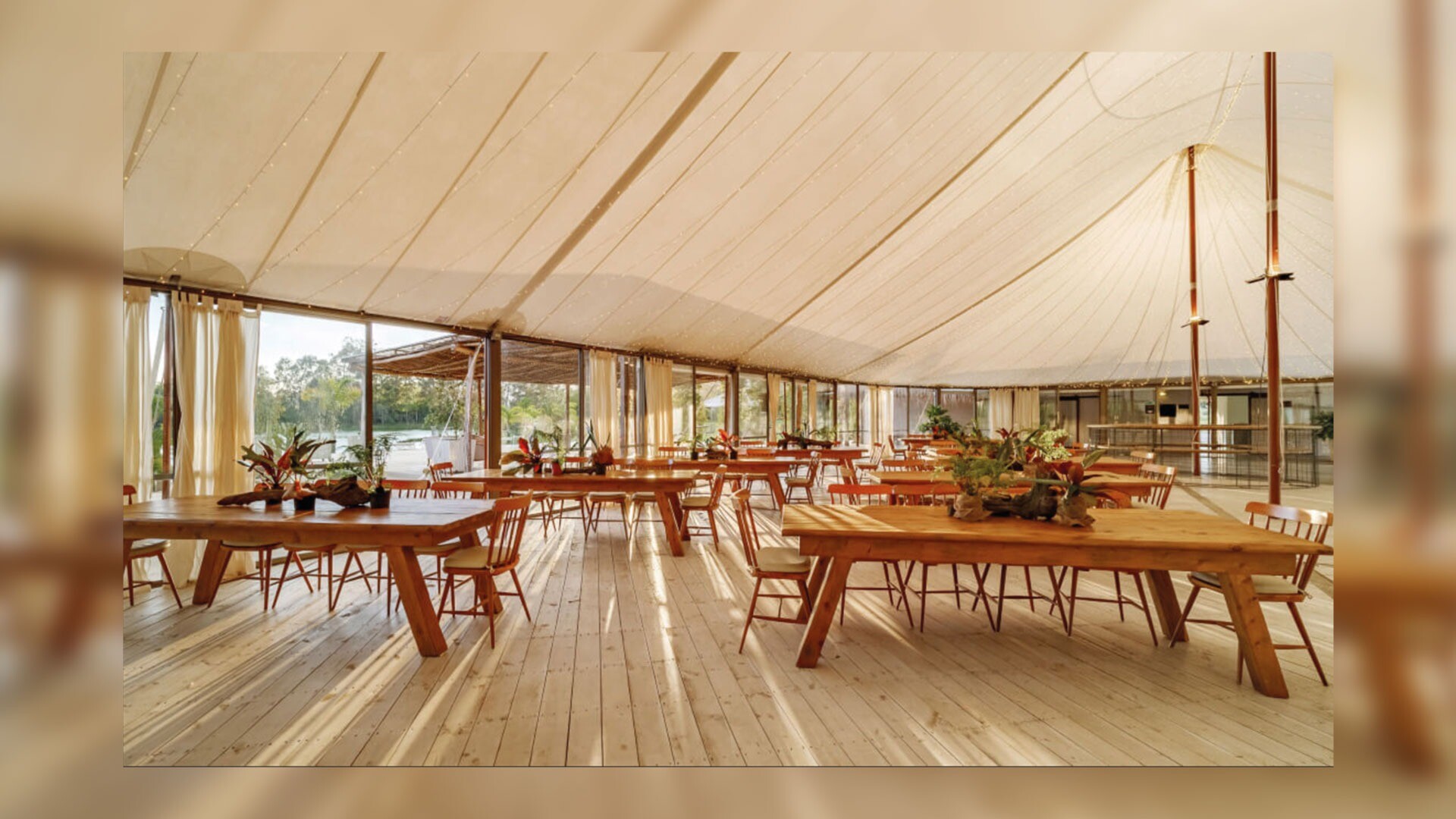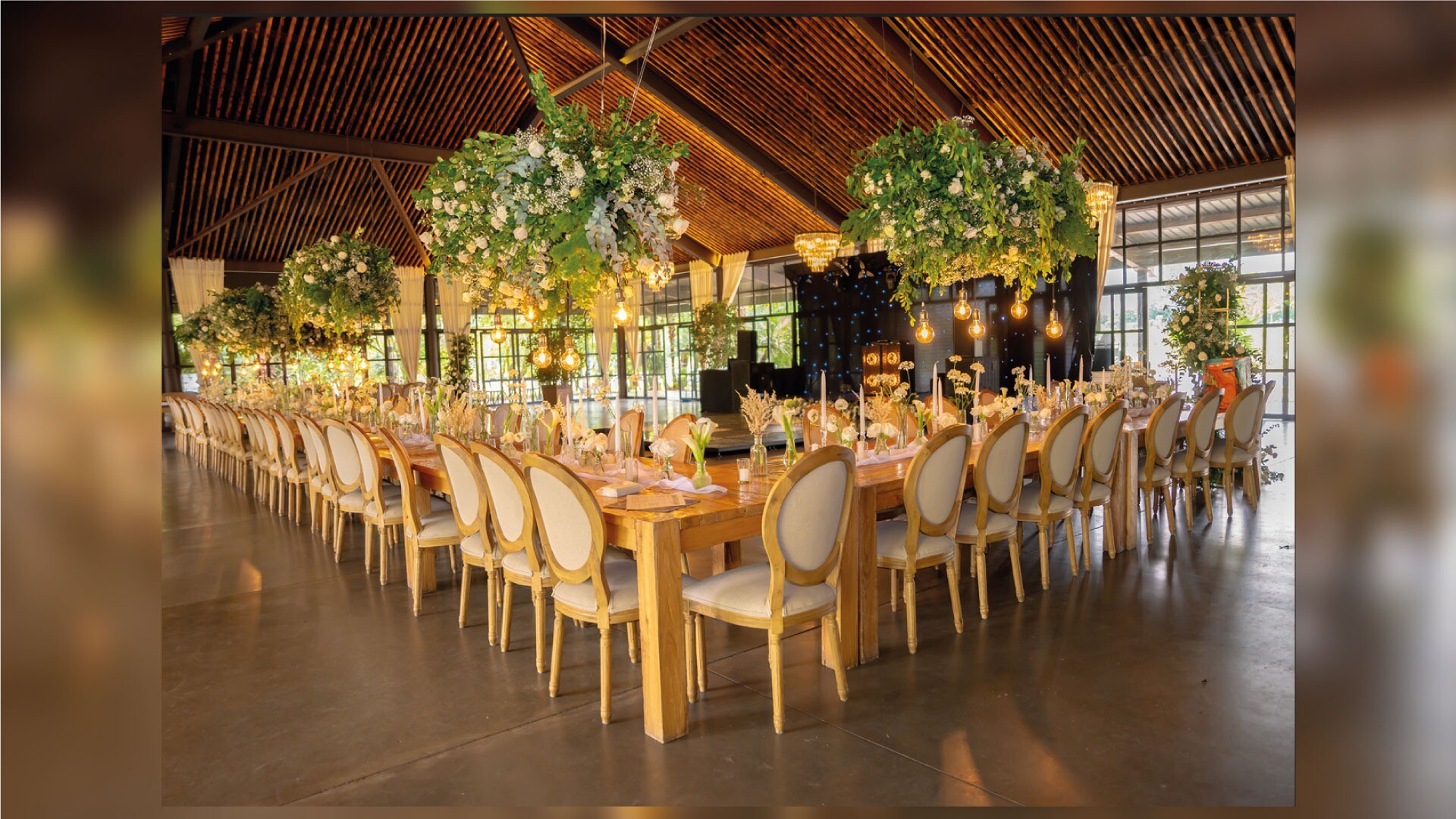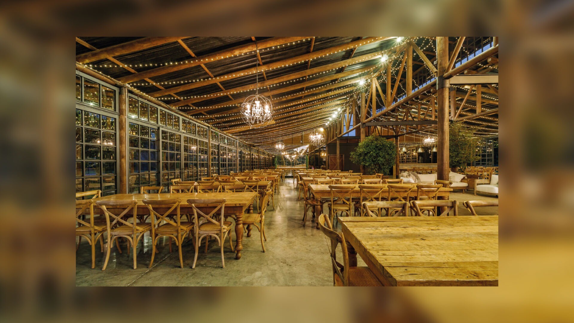 El Establo: La fusión perfecta entre lo rústico y lo contemporáneo. Con capacidad para 200 personas, ofrece una vista privilegiada al lago, un deck para cócteles y corredores exteriores envueltos en paisajes de ensueño.
