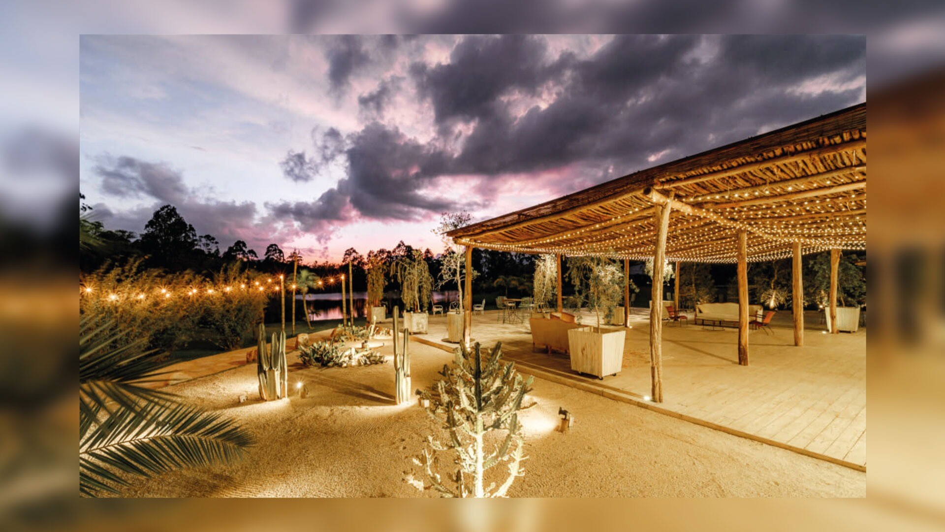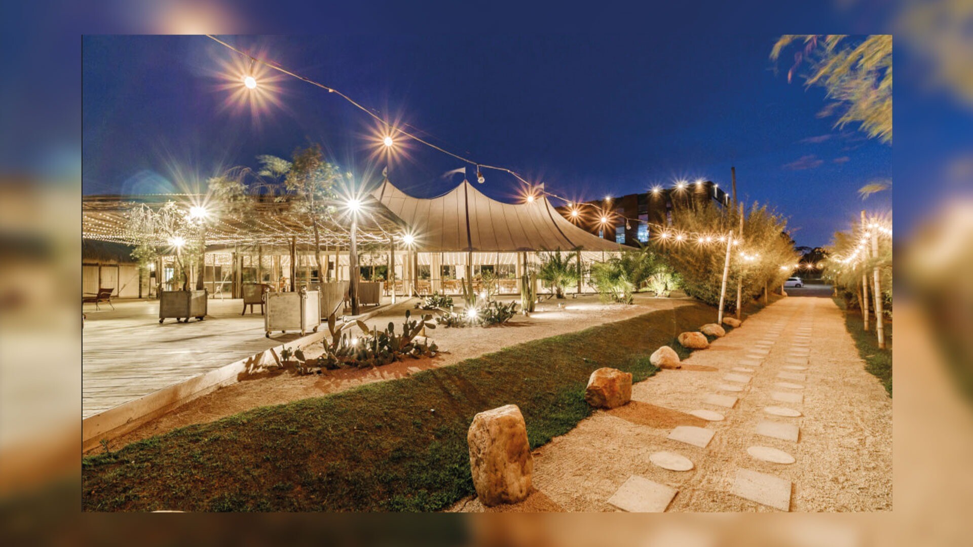 Marrakech: Una propuesta disruptiva que evoca el desierto marroquí. Rodeado de arena y cactus, este espacio para 200 personas ofrece una experiencia de exclusividad y tranquilidad con un estilo arquitectónico único.