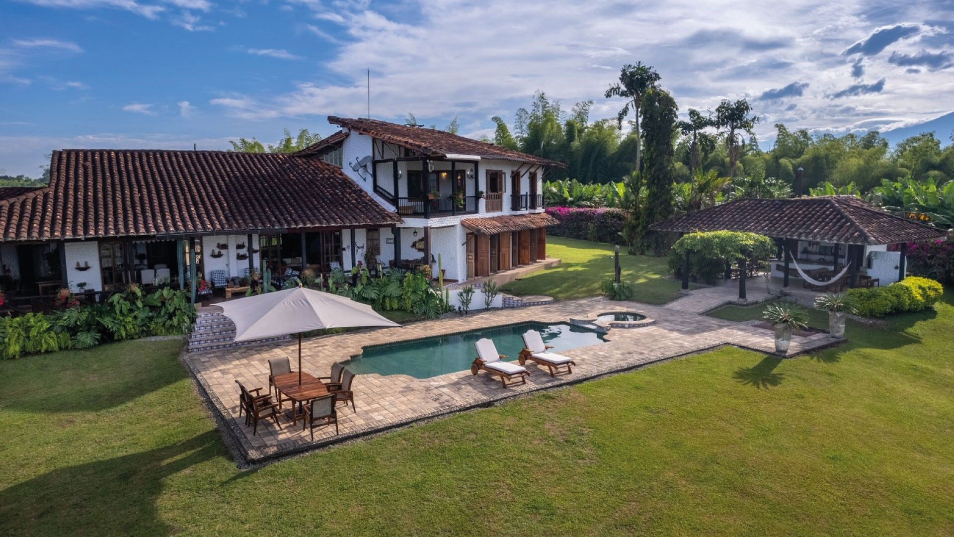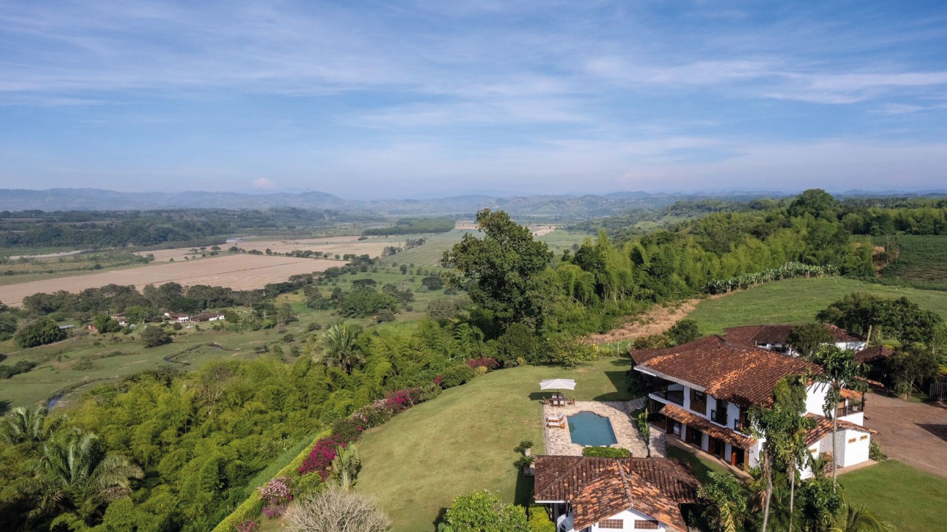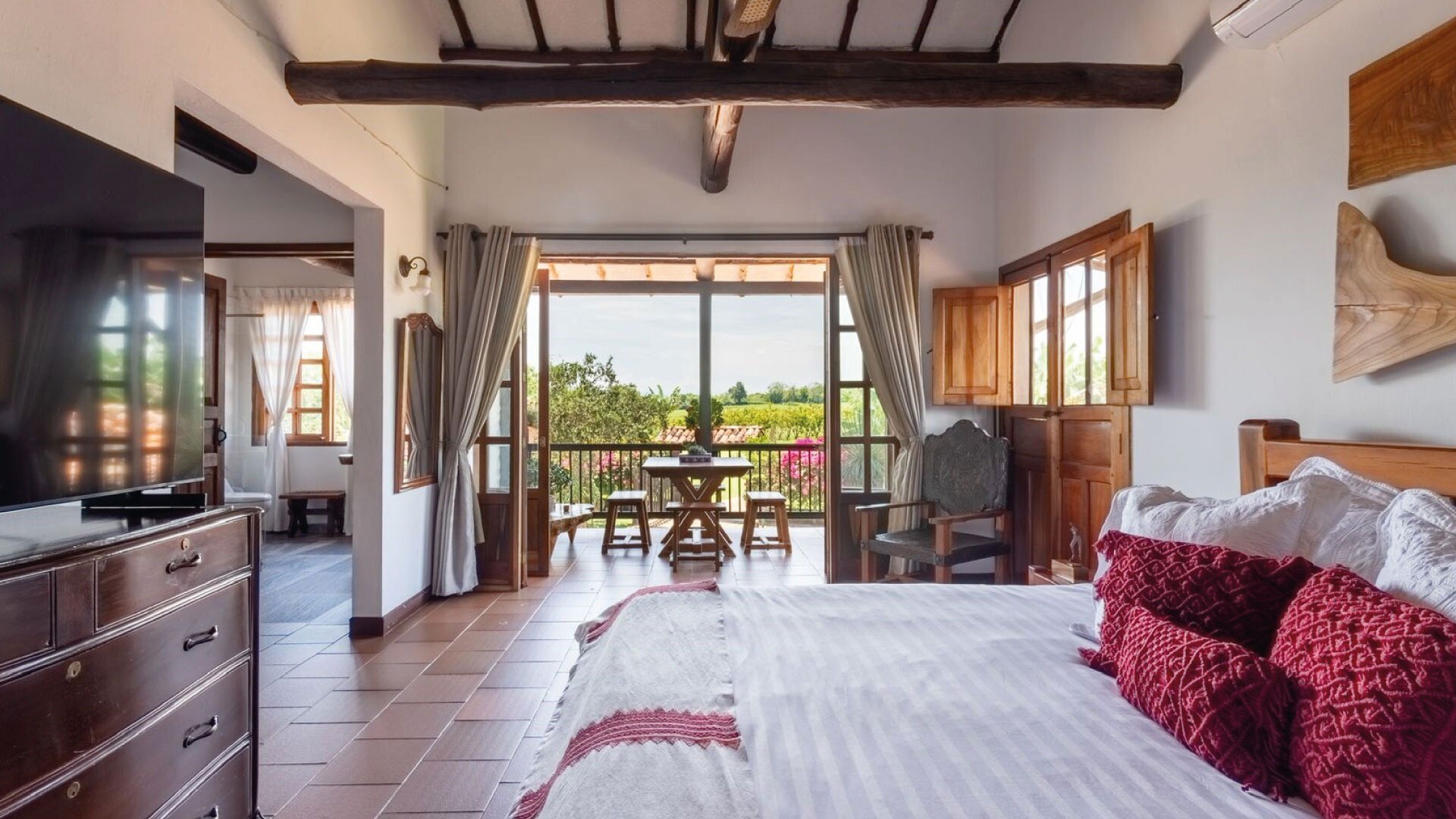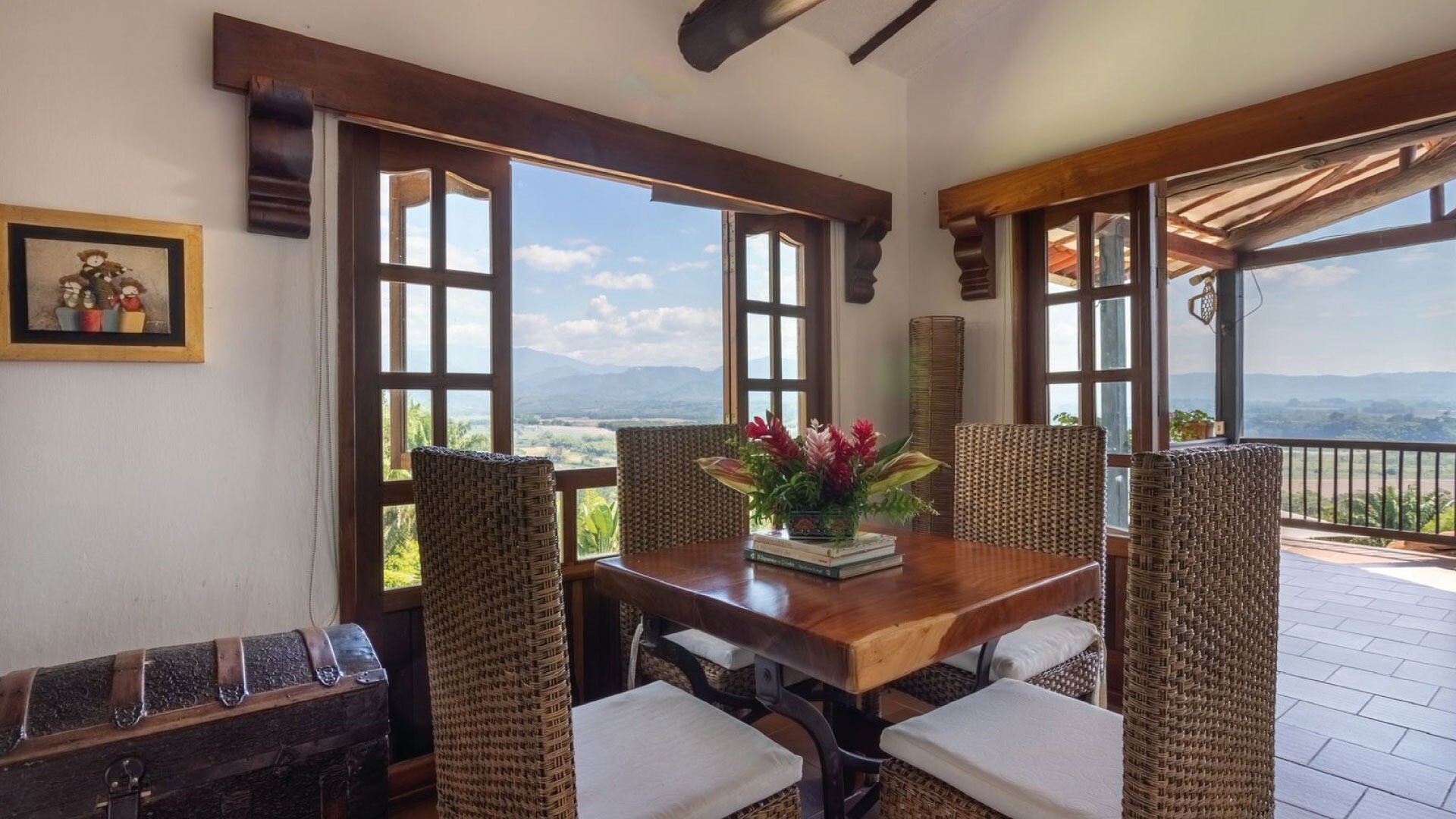 Casa El Paraná, un refugio único y un lugar para eventos de Tu San Agustín. Ubicada entre 12 hectáreas de naturaleza y agricultura en el Quindío, esta casa combina la arquitectura española con el estilo antioqueño para crear un ambiente rústico y especial. Con habitaciones que ofrecen vistas increíbles al Valle de Maravélez, es el escenario perfecto para bodas y celebraciones de ensueño. Aquí puedes alquilar la casa completa y disfrutar de un entorno con la tranquilidad ideal para un evento íntimo y memorable