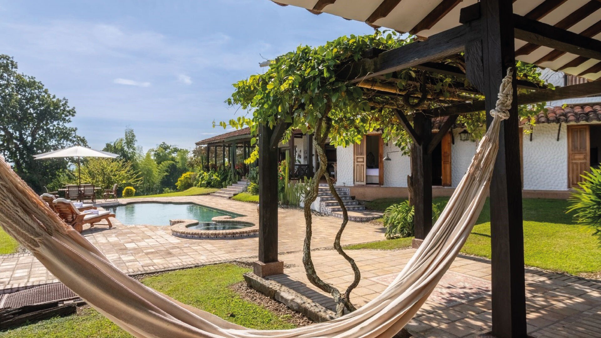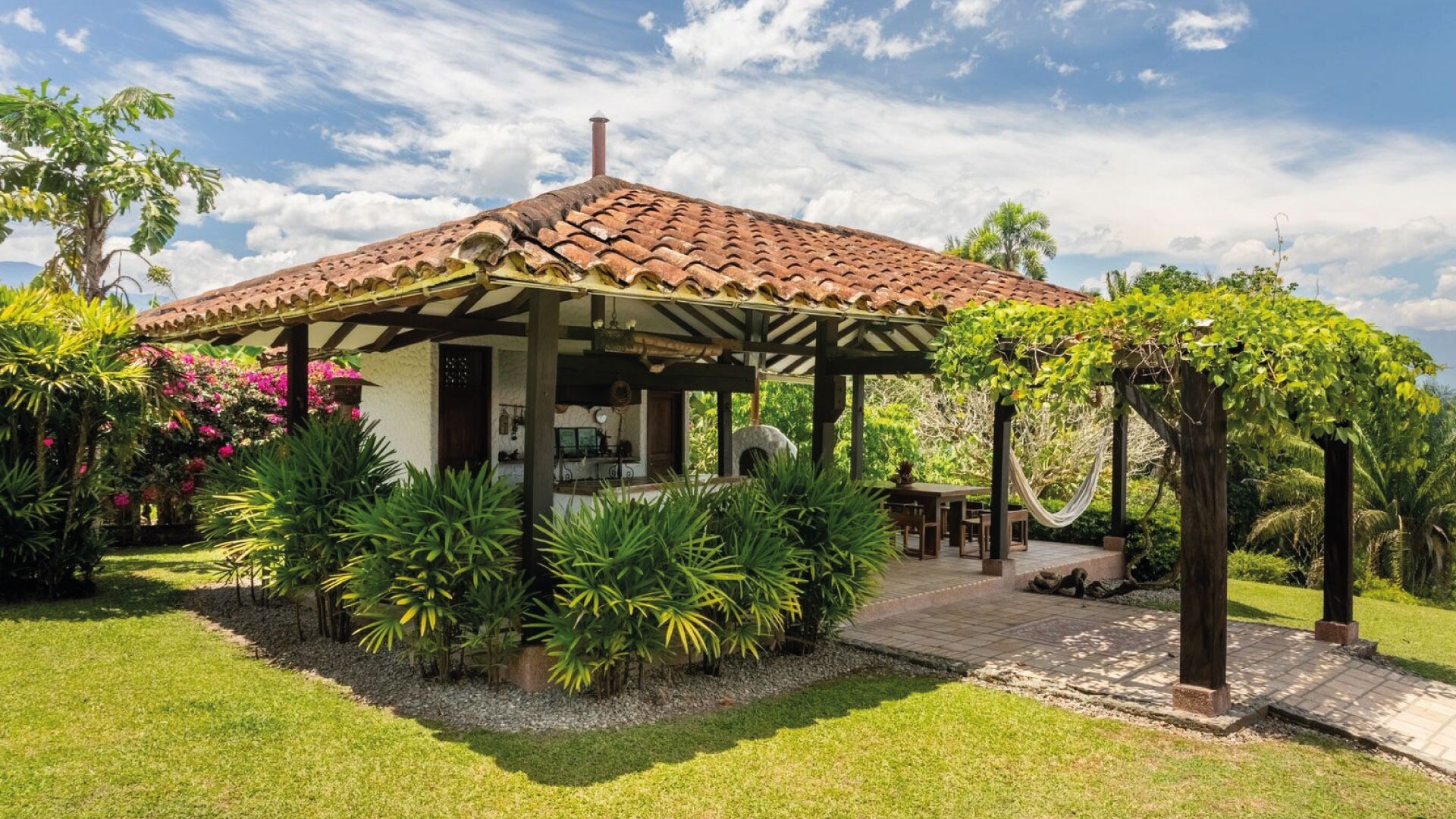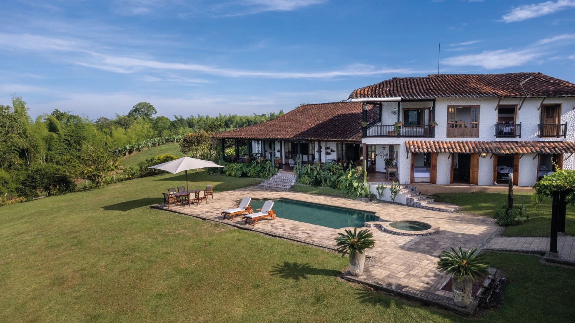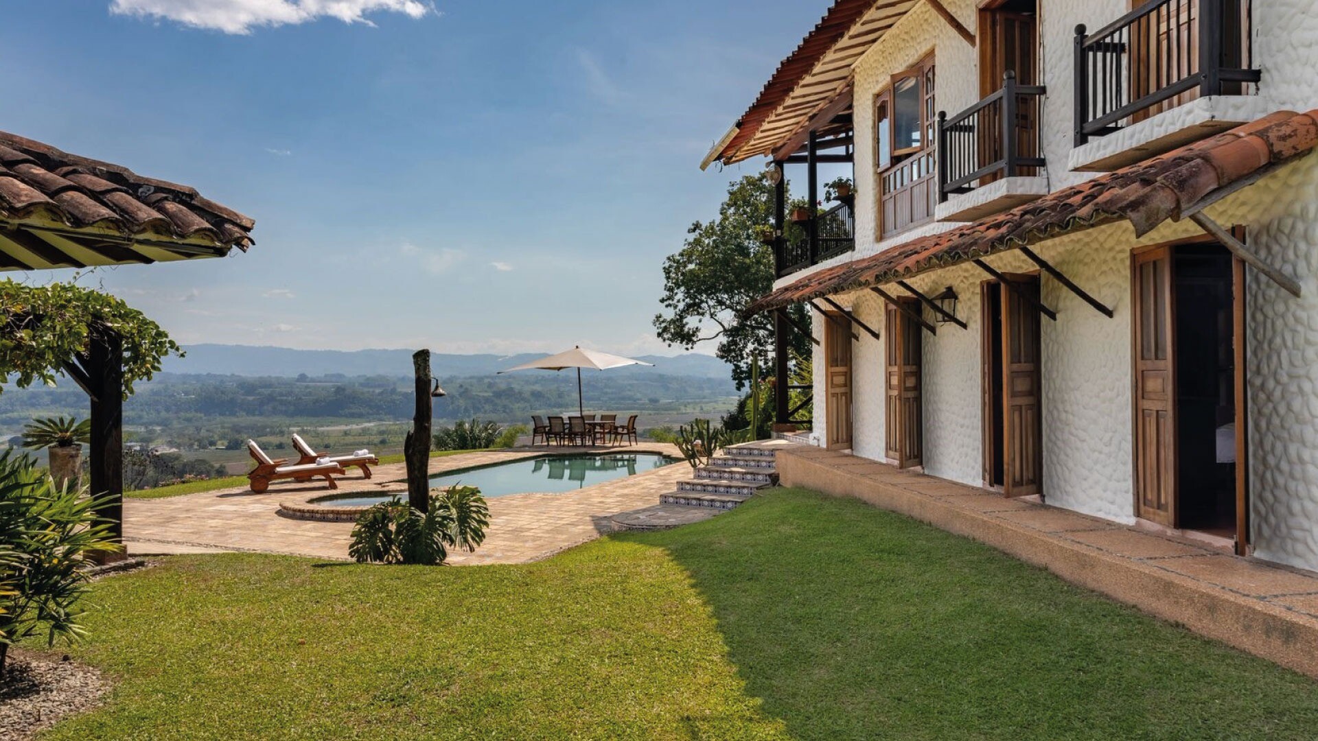 Casa El Paraná, un refugio único y un lugar para eventos de Tu San Agustín. Ubicada entre 12 hectáreas de naturaleza y agricultura en el Quindío, esta casa combina la arquitectura española con el estilo antioqueño para crear un ambiente rústico y especial. Con habitaciones que ofrecen vistas increíbles al Valle de Maravélez, es el escenario perfecto para bodas y celebraciones de ensueño. Aquí puedes alquilar la casa completa y disfrutar de un entorno con la tranquilidad ideal para un evento íntimo y memorable