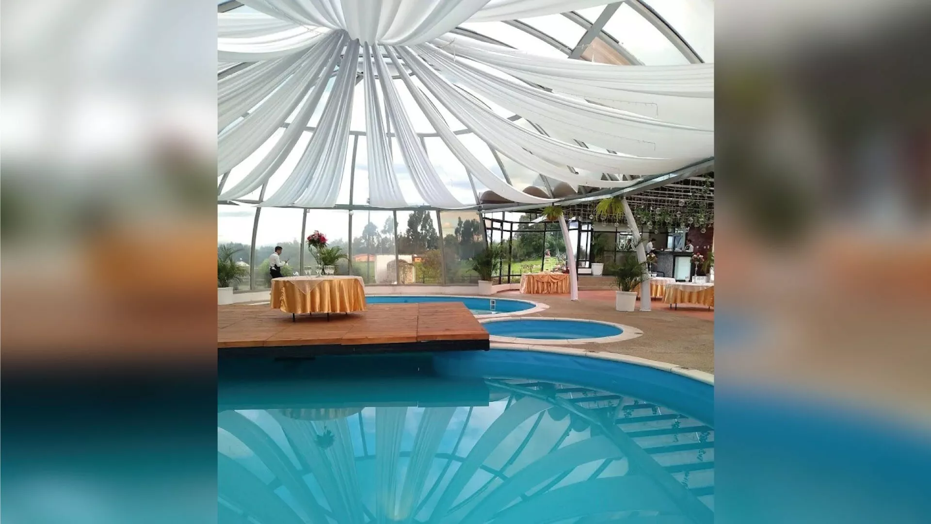 Hacienda Kalá es un fascinante lugar para Eventos de Tu San Agustín a las afueras de Bogotá. Combina la fusión perfecta entre el encanto rústico de una casona colonial y la vanguardia de un gran domo transparente. Es una joya entre nuestros Lugares para eventos, ofreciendo un estanque sereno, patios de piedra iluminados y una innovadora pista de baile sobre una piscina interna. Su estilo "rustic-chic", con altares de madera y luces de feria, crea una atmósfera mágica para celebraciones que buscan elegancia campestre y originalidad absoluta.