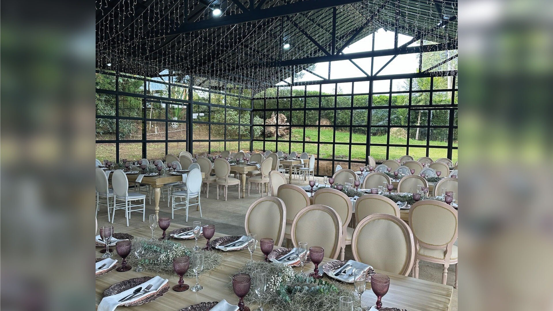 Eventos Fantasía Campestre: Tu evento de ensueño en un paraíso terrenal. Celebra en un majestuoso salón de cristal rodeado de exuberante naturaleza, donde la luz natural inunda cada rincón y los techos altos crean una sensación de amplitud.